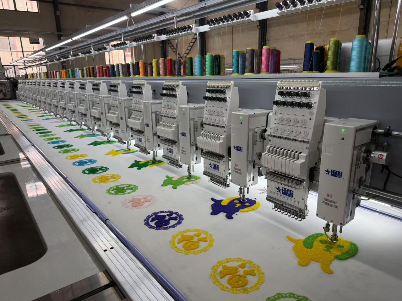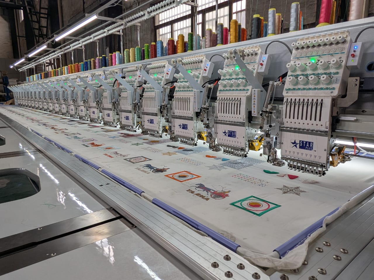 Large-scale embroidery production with multi-head precision machines for bulk orders